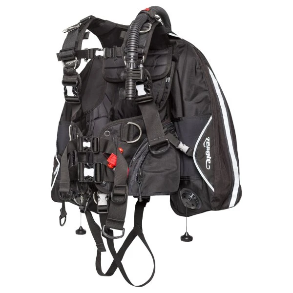 Da es für besondere, und zum Teil ausrüstungsintensive Tauchgänge konstruiert wurde, bietet das Zeagle 911 Wing Jacket für Einsatzkräfte viele Befestigungs- und Verstauungsmöglichkeiten. Das Zeagle 911 Tauchjacket ist mit 6 Edelstahl D-Ringe direkt am Jacket, und 4 weiteren Edelstahl D-Ringe an den Schultergurten ausgestattet, 2 davon einstellbar. Sie finden seitlich am Zeagle 911 Wing Jacket zwei große Taschen mit Reißverschlüssen, und zwei zusätzliche Taschen am Jacket um lange Schläuche, zum Beispiel Oktopusschläuche, zu verstauen.