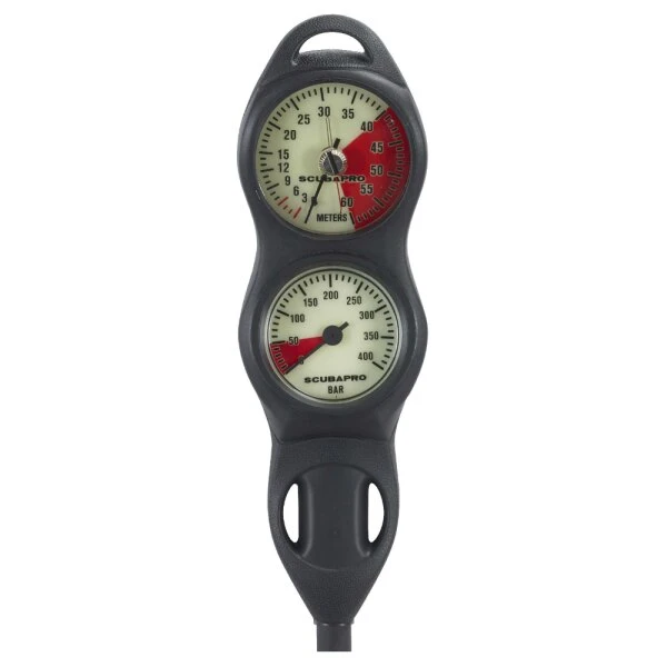 Die Scubapro Analoge 2‘er Konsole mit Tiefenmesser und Finimeter ist eine hochwertige und zuverlässige Analoge Tauchinstrumenten Konsole die mit ihrem leichten Gewicht und ihre kompakten Maße Ihre Tauchausrüstung nicht beschwert, und auch im Urlaubsgepäck immer ein Platz findet.