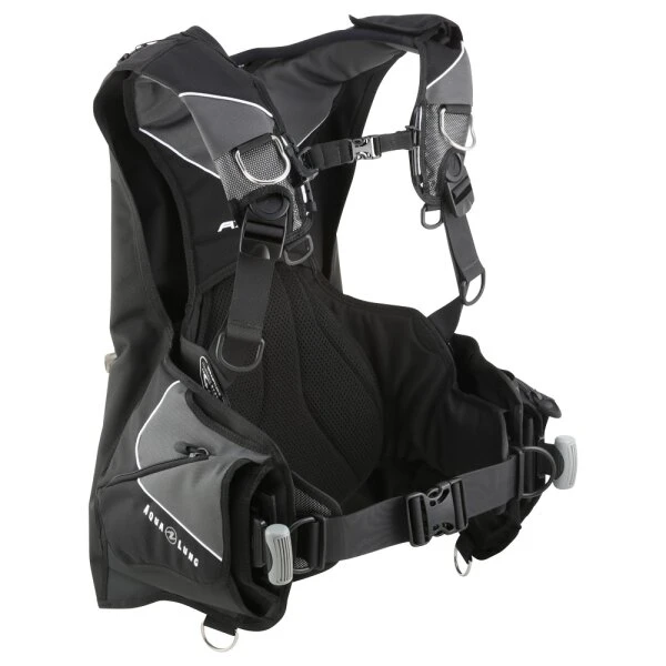 Ausgestattet mit allen modernen AquaLung Technologien wie z.B. ein i3 integrierter Inflator, Wrapture Harness System, die SureLock II Bleitaschen und die GripLock Flaschenbandbefestigung.
