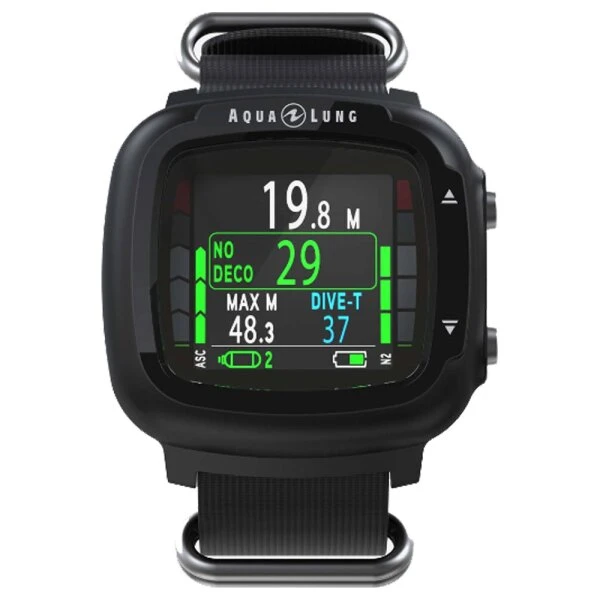 Der Aqualung i330R wird Ihnen bei vielen Tauchabenteuern ein treuer Begleiter sein und wird sie mit seinen vielen praktischen Features, seiner Benutzerfreundlichkeit, seinen kompakten Maßen und seiner robusten Bauweise begeistern. Mit dem mitgelieferten Nato-Armband für i330R können Sie ihn sicher am Handgelenk befestigen und darauf bauen, dass er nicht verloren geht, denn das Armband verläuft unter dem Tauchcomputer und kann sich somit praktisch unmöglich von alleine lösen.