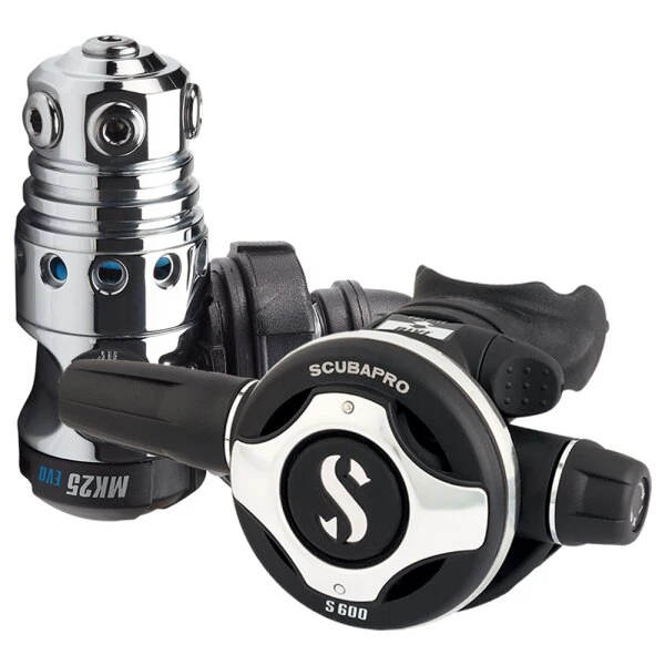 Dieser hochwertige Scubapro Atemreglerbesteht ist auch verfügbar als Atemreglerset MK25 S600 R105 mit passender alternativen Luftversorgung und auch als Scubapro Atemregler Komplettset mit Finimeter, Inflatorschlauch und Atemreglertasche verfügbar.