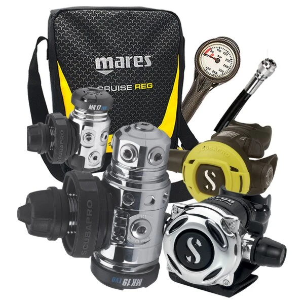 Eine komplette Scubapro Atemregler Kombination für Profis, inklusive zweiter 1.Stufe für eine hochwertige und zuverlässige Atemregler Kaltwasser Konfiguration.