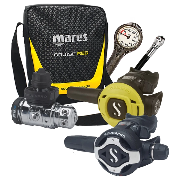 Atemregler Komplettset Scubapro MK19 EVO / S620 Ti / S270 inkl. Finimeter, Inflatorschlauch und Atemreglertasche