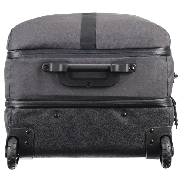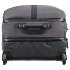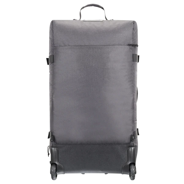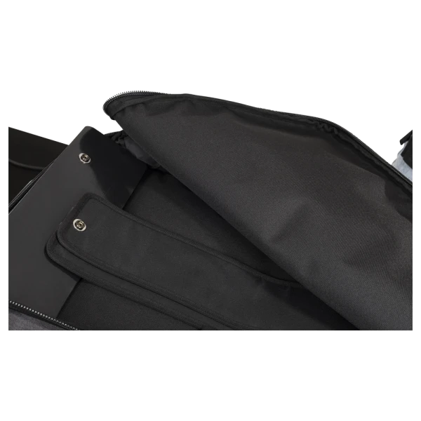 Transportmöglichkeiten: Kunststoffrollen austauschbar mit salzwasserbeständigen Achsen, gepolsterter Ziehgriff am oberen Ende, gepolsterter seitlicher Tragegriff. Robuster Kunststoffgriff an der unteren Seite zum heben und für sicheren Stand, gepolsterte, einstellbare Rucksackgurte in einem separaten Fach auf der Rückseite verstaubar.