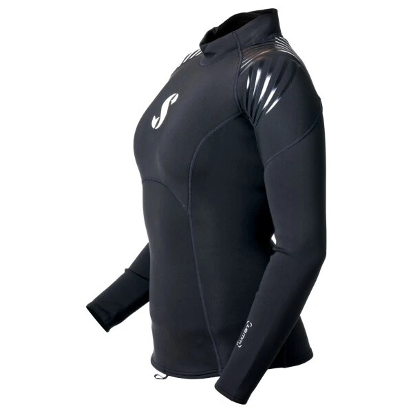 Der Definition Top 1mm ist ein dünnes langarm Neoprenshirt für Damen, verfügbar auch als Herren Neoprenshirt Definition Top 1mm Man und als 1mm Neoprenoverall Definition 1, von dem Traditionshersteller Scubapro. Wie bereits bei der ganzen Definition Tauchanzug Serie, wie der Definition 5 5mm Neoprenanzug oder der 7mm Halbtrockentauchanzug Definition 7, setzt der erfahrene Hersteller auch bei diesem Shirt auf strapazierfähiges und elastisches Neopren Material, gute Passform und hochwertige Verarbeitung, und bietet Ihnen mit dem Definition Top ein praktisches Neopren Oberteil, perfekt geeignet für alle Wassersportarten die eine leichte, wärmende Schicht erfordern oder auch als Unterzieher unter dem Tauchanzug.