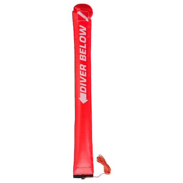 Die Scubapro Standard Dekoboje kann Unterwasser mit der Luftdusche aufgeblasen werden, steigt an die Oberfläche wo sie senkrecht positioniert bleibt dank dem kleinen Gewicht das am unteren Ende der Scubapro Dekoboje angebracht ist. Mit einer Gesamtlänge von 130cm und der grell orangenen Farbe ist die Scubapro Standard Dekoboje auch auf großer Entfernung und bei starkem Wellengang noch gut sichtbar an der Wasseroberfläche.