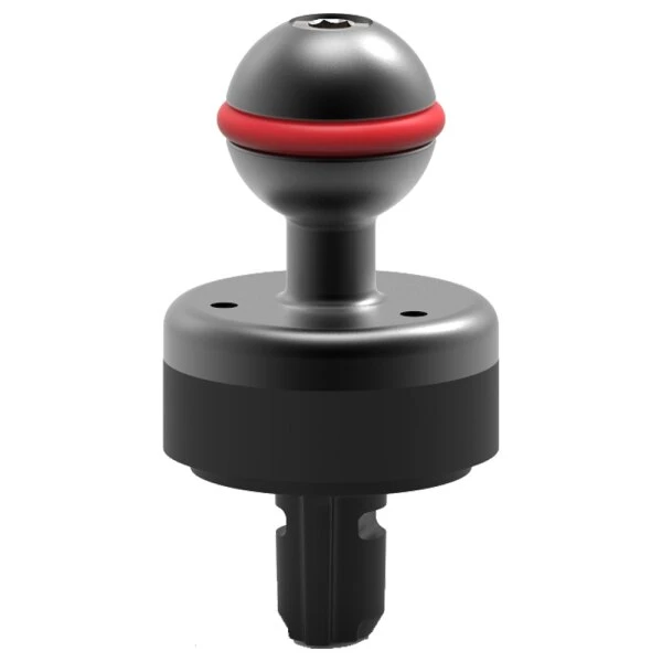Abgestimmt auf den Rest der Flex Connect Serie, verbindet dieser praktische Kugelgelenk-Adapter jede Unterwasserlampe die mit einem standardmäßiges 1″/25mm-Kugelgelenk-Befestigungssystem verwenden werden kann mit dem gewünschten einem Flex-Connect-Arm, -Griff, mit einer Schiene für Unterwasserkameras oder einem Cold Shoe.