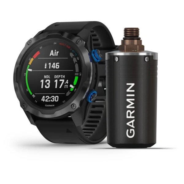 Luftintegration: ja, mit dem Garmin T1 Transmitter und Garmin Connect, Anzeige verbleibende Gaszeit, Gasverbrauchsrate