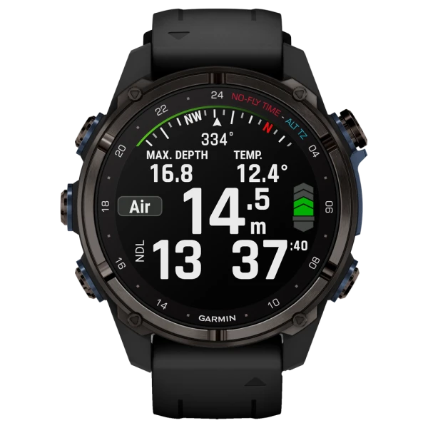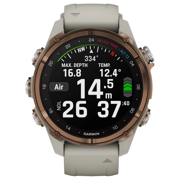 Auch weitere nützliche Messinstrumente sind in das neue Technikwunder von Garmin integriert um Ihnen alle nötigen Informationen für ein perfekt entspanntes Unterwasserabenteuer zu bieten – Tiefenmesser, Wassertemperatur, Gyroskop, Beschleunigungsmesser und barometrischer Höhenmesser.