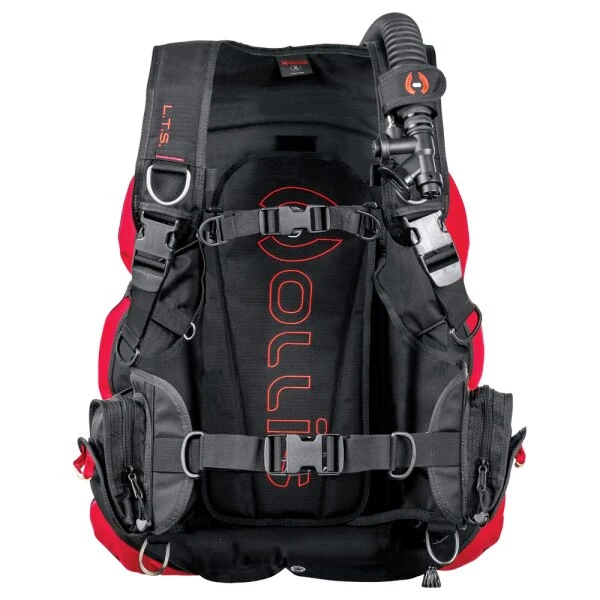 Das Hollis LTS Tauchjacket lehnt im Punkto Ausstattung, Design und rot-schwarze Farbgestaltung and das beliebte Hollis HD200, eins der meist-verkauften Wing Jackets und Hollis Tarierjackets weltweit.