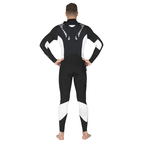 Der optimierte Schnitt des neuen Flexa Anzugs bietet eine noch bessere Passform und erhöhte Bewegungsfreiheit, insbesondere im Schulter- und Armbereich. Details wie ein weicherer Verschluss am Kragen und die gute Polsterung im Wirbelsäulenbereich sorgen für zusätzlichen Komfort und Schutz beim Tragen schwerer Tauchausrüstung.