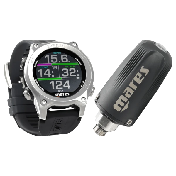 Der Mares Sirius ist ein brandneuer Mares Tauchcomputer in Uhrenformat, verfübgbar in usnerem online Tauchshop auch als Mares Sirius ohne Sender, ein Tauchcomputer für technisches Tauchen, Nitrox– und Trimix-fähig, mit Gradient Faktoren Berechnung und mit schlauchloser Luftintegration mit bis zu 3 Sendern gleichzeitig.