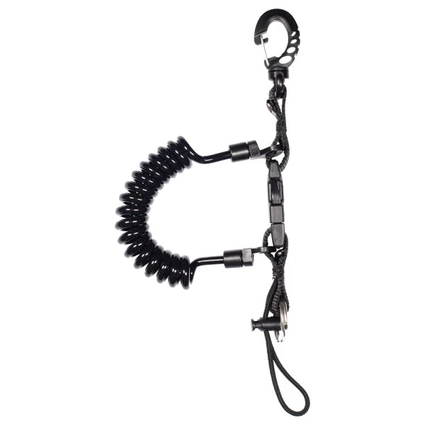 An dem einen Ende des Mares Spiralkabels befindet sich ein stabiler Kunststoff Karabiner, und an dem anderen Ende ein Edelstahlring und eine verstellbare Nylonschlaufe. Somit können Sie den Mares Spiralkabel zuverlässig an Ihrem Jacket anbringen, und am anderen Ende befestigen Sie Ihre Tauchlampe oder Ihre Tauchkamera. Bei geöffneter Fastexschnalle bietet Ihnen der Mares Spiralkabel bis zu 50cm Armfreiheit, und bei geschlossener Fastexschnalle hängt das Tauchausrüstungsteil sicher an Ihrer Ausrüstung. Und auch wenn Sie Ihre Tauchlampe oder Ihre Kamera fallen lassen, verschwindet sie nicht in den Tiefen des Ozeans, sondern hängt sicher an dem Mares Spiralkabel mit Karabinerhaken.