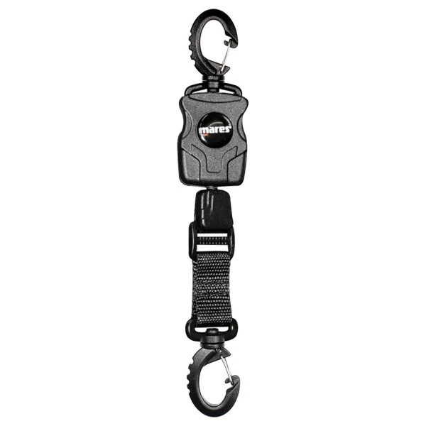 Der Mares Retractor ist ein hochwertiger Retractor für Tauchausrüstung, ein Retractor mit zwei Karabiner, mit dem Sie beim Tauchen kleine Instrumente, Unterwasser Kompass oder Schreibtafel and Ihre Tauchausrüstung befestigen können.