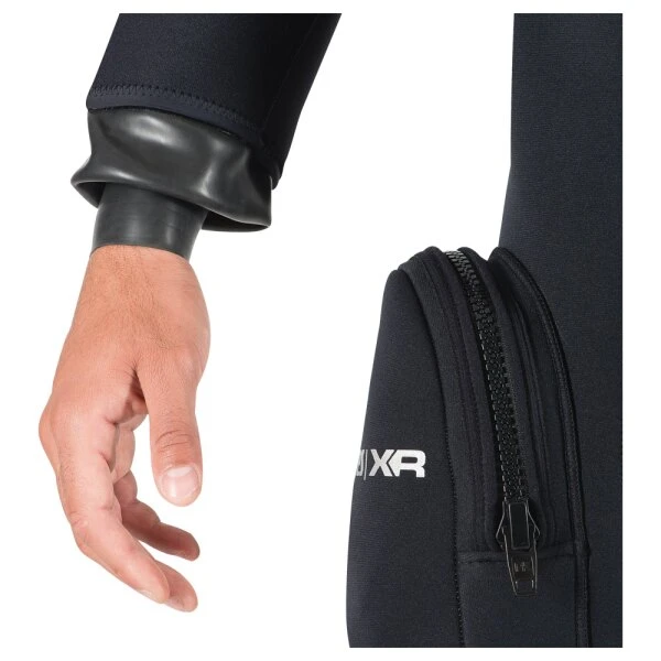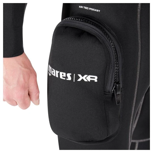 Auch Stauraum fehlt an dem Mares Neoprentrockentauchanzug XR3 nicht, denn auf dem rechten Bein finden Sie ein große Neoprentasche mit Reißverschluss.