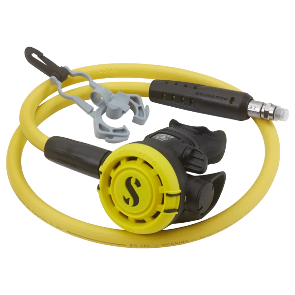Dieser Scubapro Octopus kann natürlich an jede Scubapro 1 Stufe montiert werden, und der Mitteldruckschlauch kann an beiden Seiten der R105 angebracht werden, was diese 2.Stufe sehr praktisch für Sidemounts, Pony- oder Dekotanks macht.