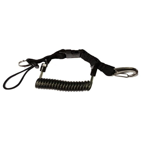 An dem Edelstahl Karabinerhaken am Ende des Polaris Spiralkabels mit Edelstahlsehne kann man den Spiralkabel sicher an das Jacket befestigen, und am anderen Ende, an dem Edelstahlring oder an der reißfesten Nylon Schlaufe, befestigt man die wertvolle Unterwasserkamera oder eine Tauchlampe die man nicht verlieren möchte, auch wenn sie mal beim Tauchen aus der Hand fallen sollte. Bei geöffneter Fastexschnalle bietet Ihnen der Polaris Spiralkabel bis zu 100cm Armfreiheit, und bei geschlossener Fastexschnalle hängt das Tauchausrüstungsteil sicher an Ihrer Ausrüstung.