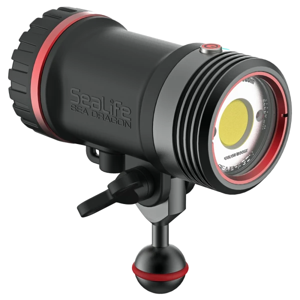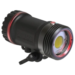 Entdecke mit der neuen Sea Dragon 5000+ von SeaLife die verborgene Magie der Unterwasserwelten in lebendigen Farben. Durch ihre beeindruckende Leuchtkraft von 5000 Lumen des proprietären COB-LED-Array und einen breiten Abstrahlwinkel von 120 Grad, taucht diese Lampe deine Unterwasserabenteuer in ein Licht, das dem natürlichen Sonnenlicht mit einem Farbwiedergabeindex von CRI 90 extrem nahekommt. (Sonnenlicht hat ein CRI von 100)