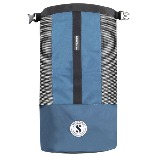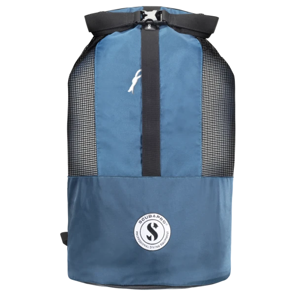 Der Scubapro Mesh 65 Netzrucksack ist für Einsätze am Strand oder auf dem Boot gedacht, wo man oft noch nasse Ausrüstung verstauen muss, daher wurde ganz bewusst am Boden der Tasche eine große Öffnung für den Wasserablauf eingebaut, und es wurde großflächig Netzgewebe eingesetzt, damit viel Luft an die nasse Ausrüstung gelangt, um eine schonende und schnelle Trocknung ohne Staunässe zu gewährleisten.