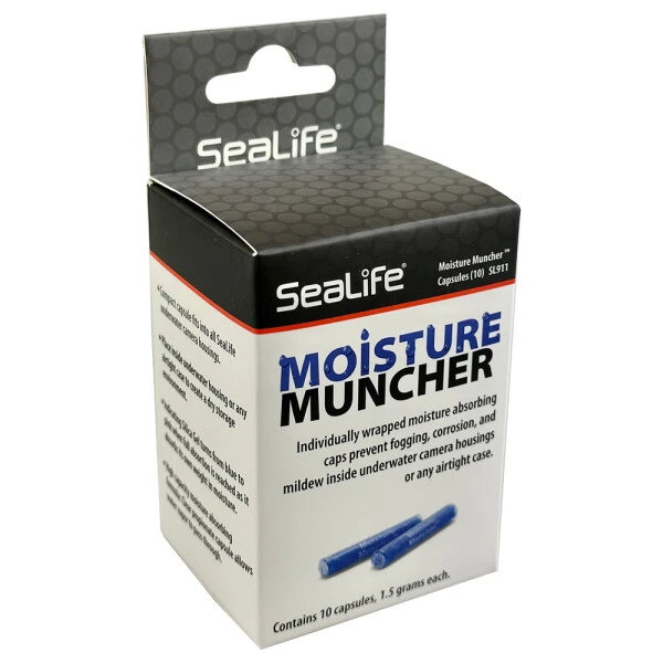 Moisture Muncher, Marken-Trockenwirkstoff in Kapselform, das das Leben Ihrer Kamera und Filme bewahrt in dem es sie gegen Feuchtigkeit schützt. Einfach im Gehäuse befestigen und regelmäßig die Farbe überprüfen. Die Kapsel muss man ersetzen wenn die blauen Kristalle sich rosa verfärben.