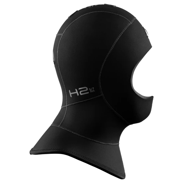 Diese H2 Variante wurde aus 7mm und 3mm Materialstärken hergestellt um maximalen Kälteschutz und gleichzeitig optimalen Komfort zu bieten. Die 7mm Neopren im Kopfbereich packen den Kopf des Tauchers warm ein, und die 5mm Neopren im Kragen Bereich sorgen für angenehmen Sitz um den Hals ohne den Taucher beim Tragen einzuengen.