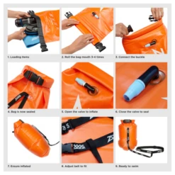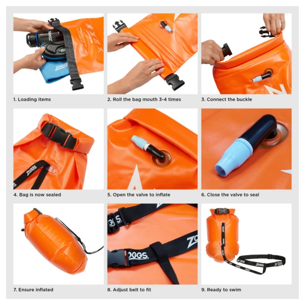 Leuchtend farbige aufblasbare Boje mit Taillengurt ideal für das Freiwasserschwimmen zur besseren Sicherheit.